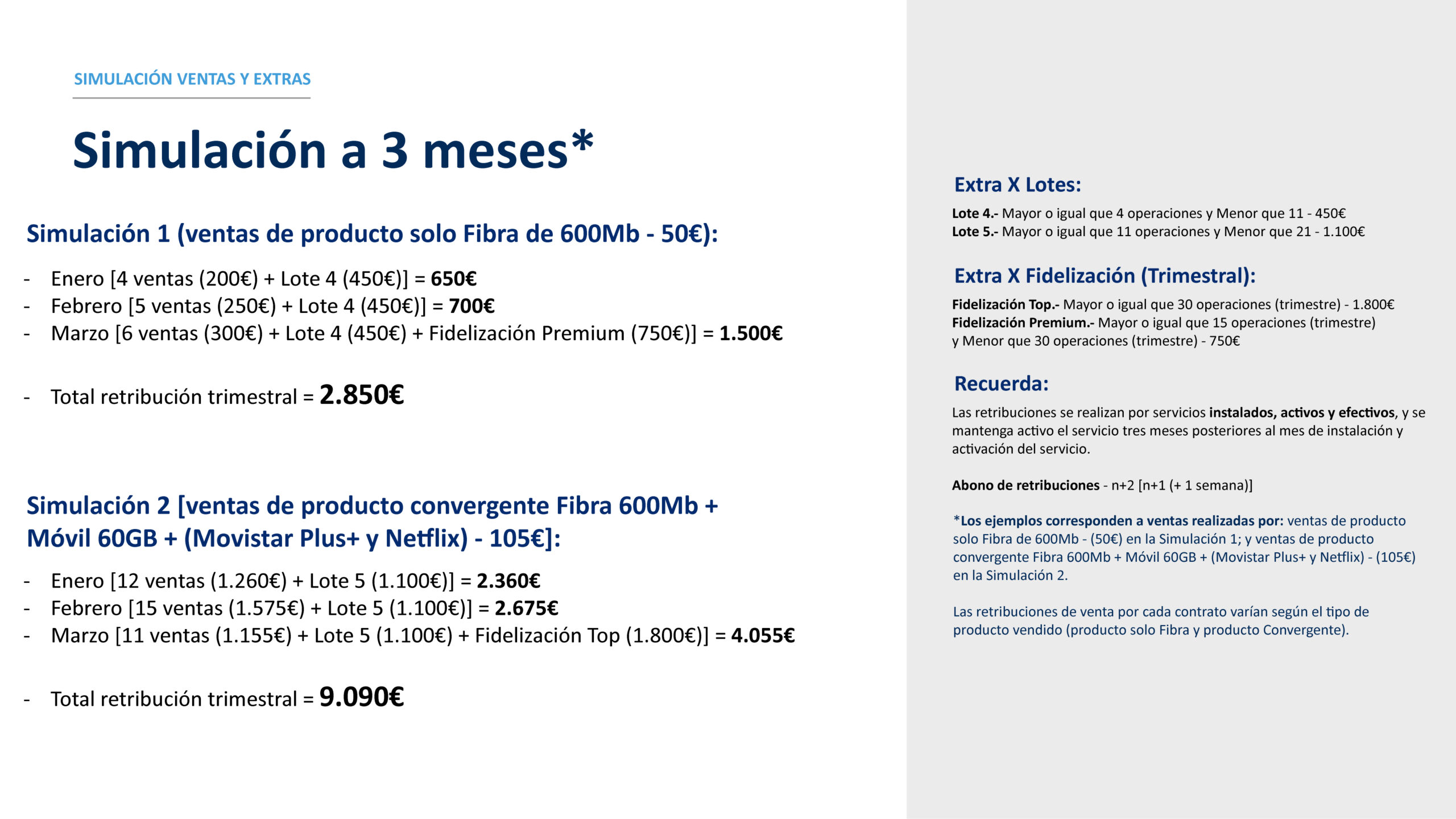 Simulación de ventas y extras